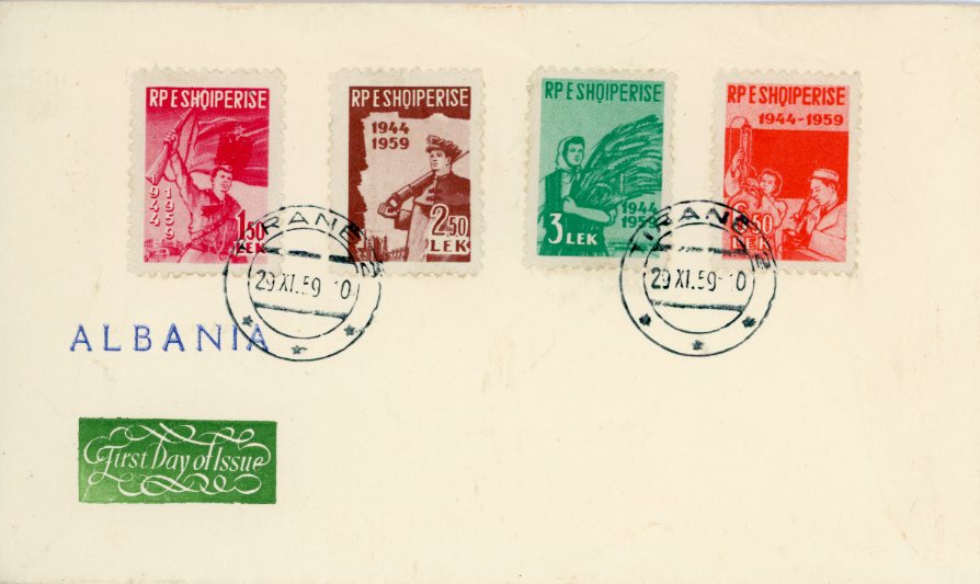 Albania: 1959 15th Anniversary of Liberation first day cover.