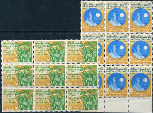 Iraq: 1959 (14 July). First Anniversary of Revolution unmounted mint block of 6 set. Mi. 284/285, Sg. 512/513