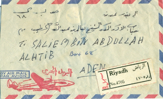 1960 Riyadh Registered Cover to Aden