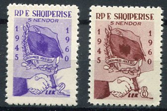 Albania: 1961 (10 January). 15th Anniversary of Albanian Soviet Friendship Society unmounted mint set. Sc. 581/582