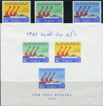Yemen Kingdom: 1961 (July). Hodeida Port unmounted mint set and miniature sheet. Mi. 212/214, Bl.4 – Sg. 138/140, MS140a. **
