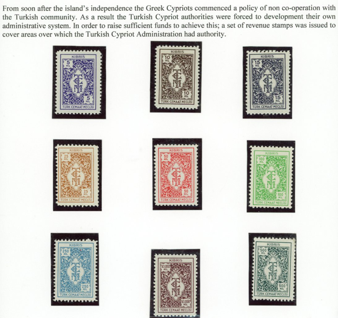 Turkish Cyprus: 1962-1973 Turkish Cypriot Administration unmounted mint revenue stamps t0 1,000m. **