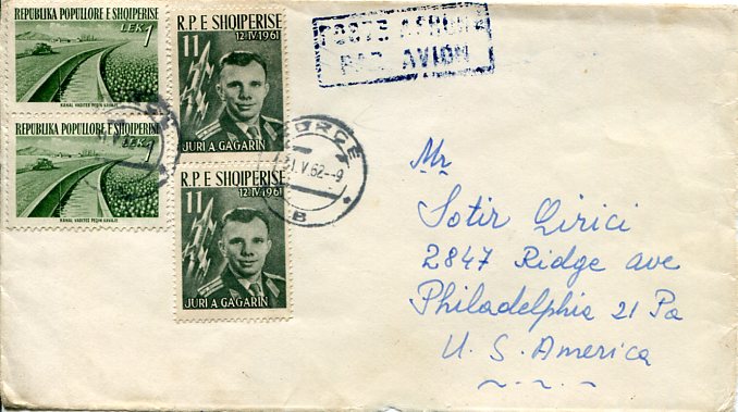 1962 Albania Korce 11l Gagarin Cover to USA