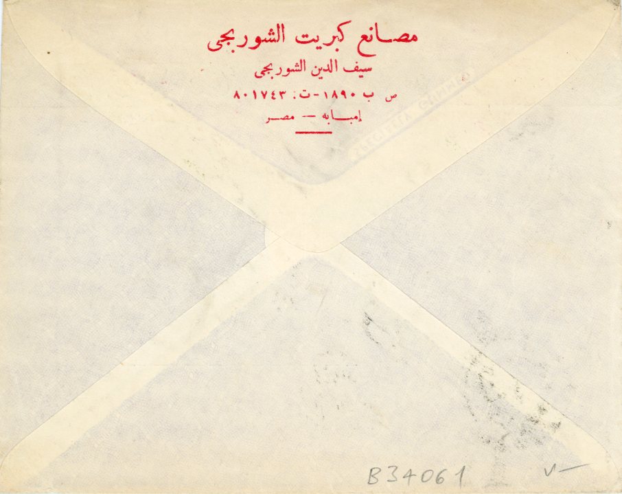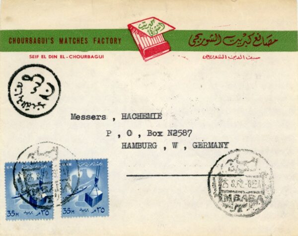 Egypt: 1962 Chourbagui’s Matches Factory imprinted registered cover from Imbabah to Germany.