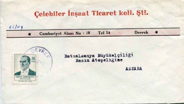 1962 Turkey DEVREK Commercial Cover