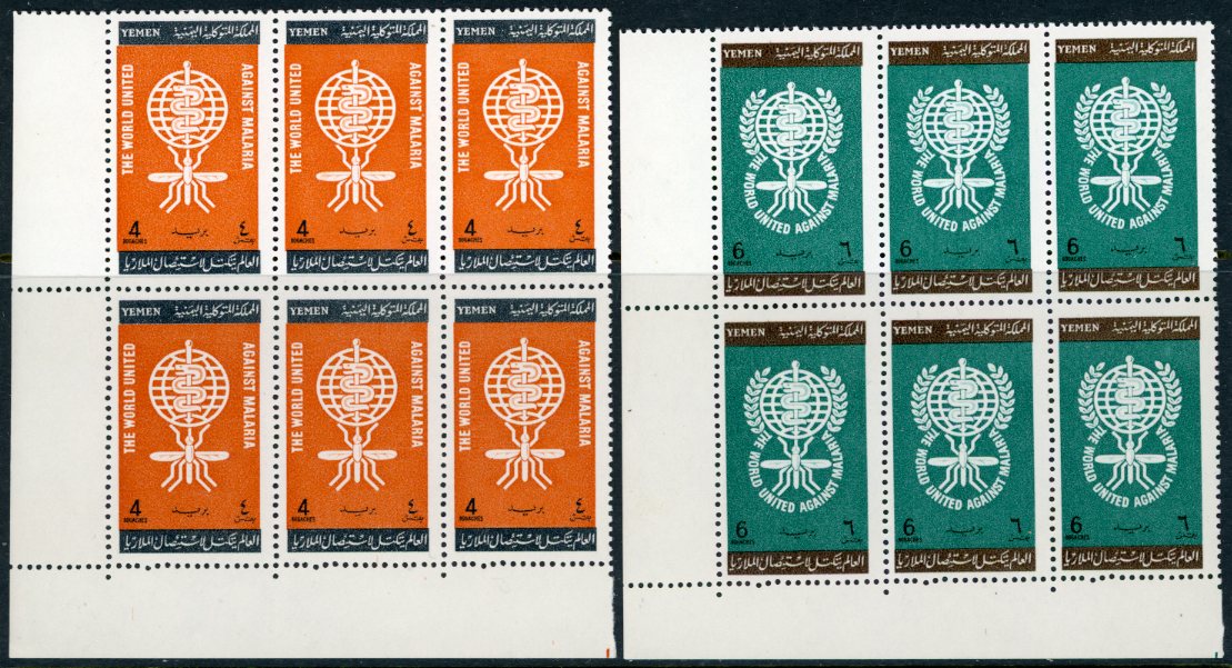 Yemen Kingdom: 1962 Malaria Eradication unmounted mint block of six set. Mi. 241/242, Sg. 167/168 **
