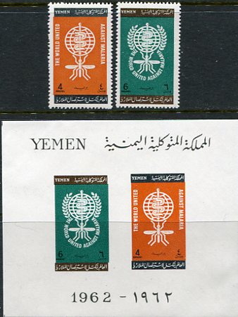 Yemen Kingdom: 1962 (20 July). Malaria Eradication unmounted mint set and miniature sheet. Mi. 241/242, Bl.8 – Sg. 167/168, MS168a. **