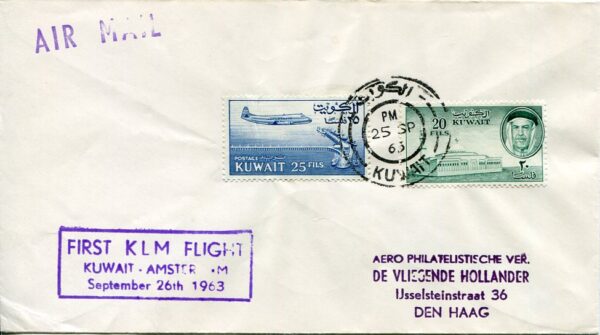 Kuwait: 1963 (25 September). First Flight from Kuwait to Netherlands by KLM with next day arrival cds..