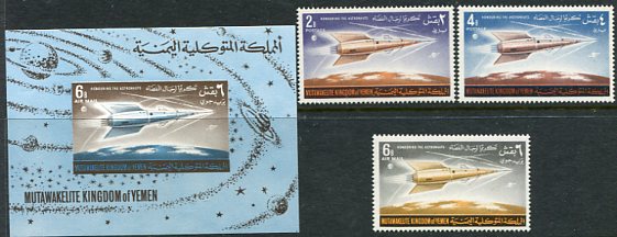 Yemen Royalist: 1964 (7 September). Astronauts unmounted mint set and miniature sheet. Mi. 76A/78A, Bl.10B, Sg. R55/R57, MSR57a. **