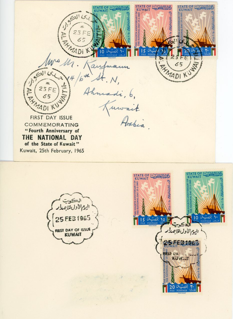 Kuwait: 1965 National Day two different FDCs.