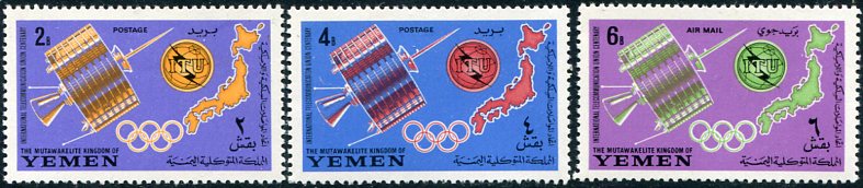 Yemen Royalist: 1965 (20 May). Centenary of International Telecommunications Union, Space unmounted mint set and miniature sheet. Mi. Block 17B, Sg. MS R71a
