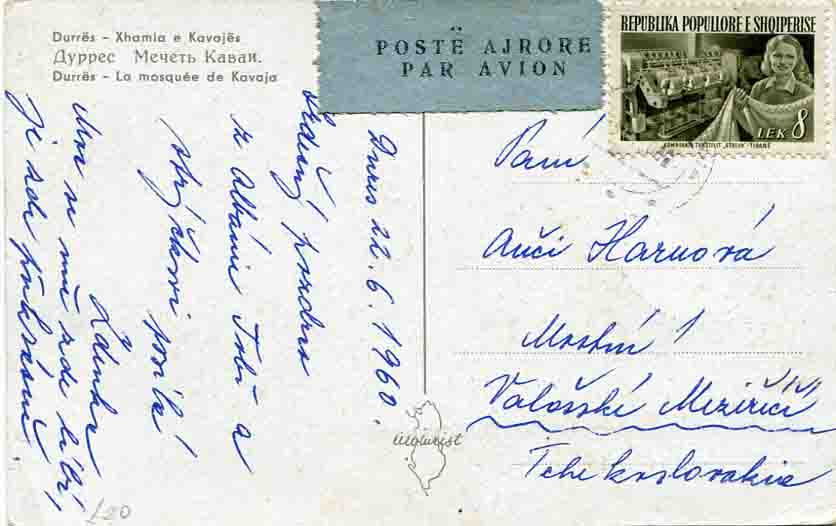 1966 Albania Kavaja Mosque PPC to Czechoslovakia