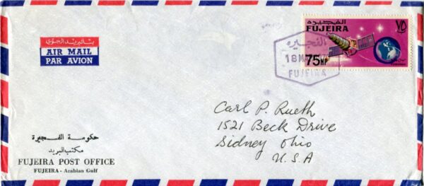 Fujeira: 1970 Post Office cover to United States franked with 75np Venus Probe space achievements stamp tied by Fujeira datestamp. Sg. 81
