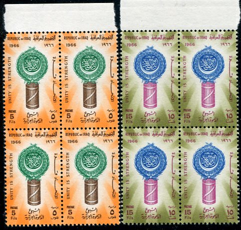 Iraq: 1966 (22 March). Arab League Week unmounted mint block of 4 set. Mi. 443/444, Sg. 715/716