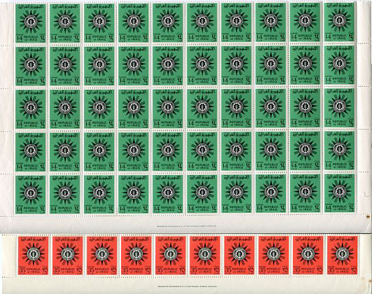 Iraq: 1966. Coat of Arms definitives unmounted mint block of 50 set. Mi. 459/460
