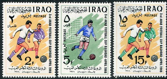 Iraq: 1966 (1 April). 3rd Arab Football Cup unmounted mint set. Mi. 445/447, Sg. 717/719