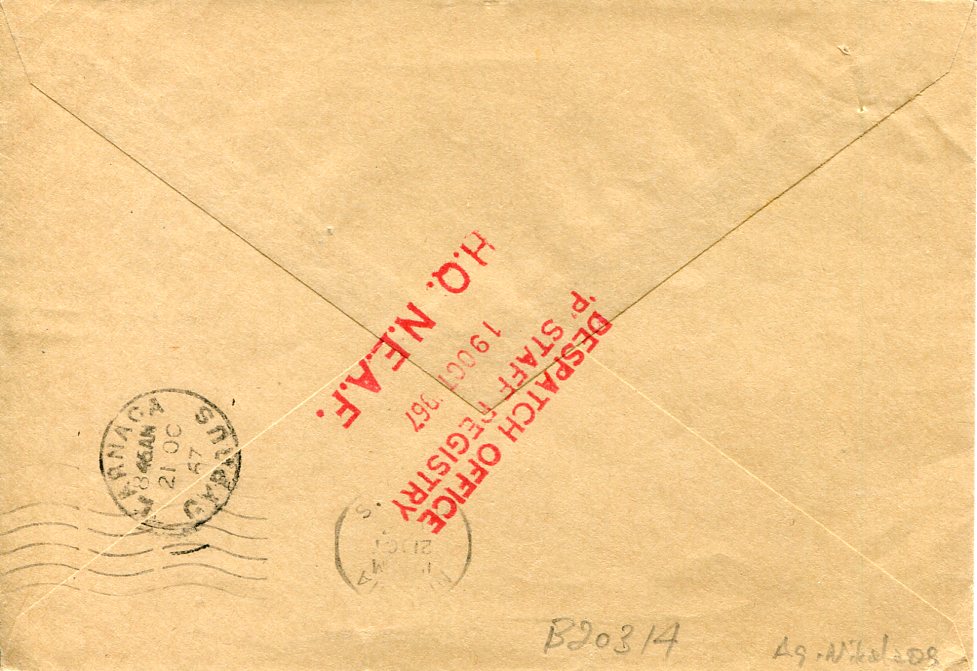 Cyprus: 1967 (20 October). OHMS official cover to Nicosia struck by Field Post Office 482 (Ayios Nikolaos) datestamp. Reverse next day Larnaca and Nicosia cds’s and ‘Despatch Office / ‘P’ Staff Registry / H.Q. N.E.A.F.’ handcachet.