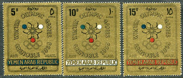 Yemen: 1967 (19 November). Grenoble Winter Olympics unmounted mint set. Mi. 613/615