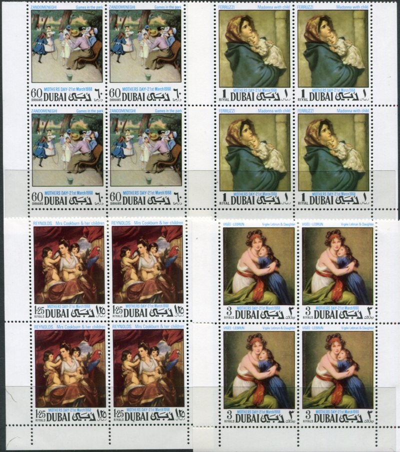 Dubai: 1968 Arab Mothers’ Day unmounted mint block of four set. Madonna, Reynolds, Zando-meneghi. Sg. 285/288. **