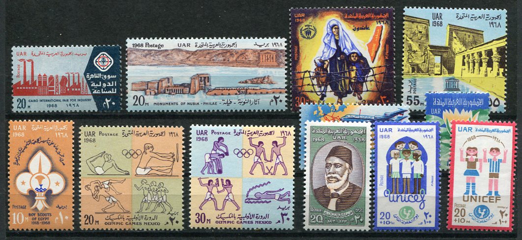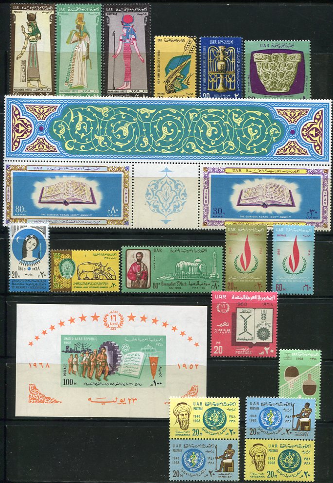 Egypt: 1968 UAR complete unmounted mint year set with miniature sheet excluding officials and postage dues. Sg. 940/969