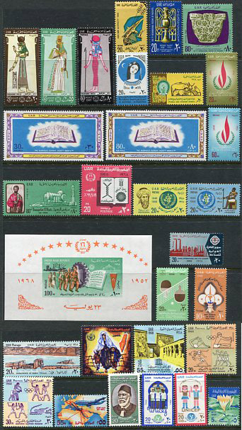 Egypt: 1968 definitive and commemorative issues unmounted mint complete year set. 29 stamps + miniature sheet. Sg. 940/969, MS954. **