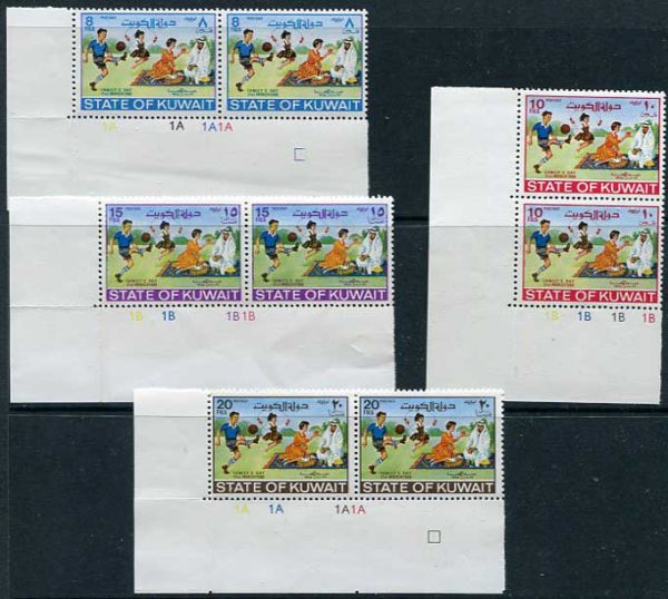 Kuwait: 1968 (21 March). Family Day unmounted mint set in corner marginal cylinder plate pairs . Sg. 382/385