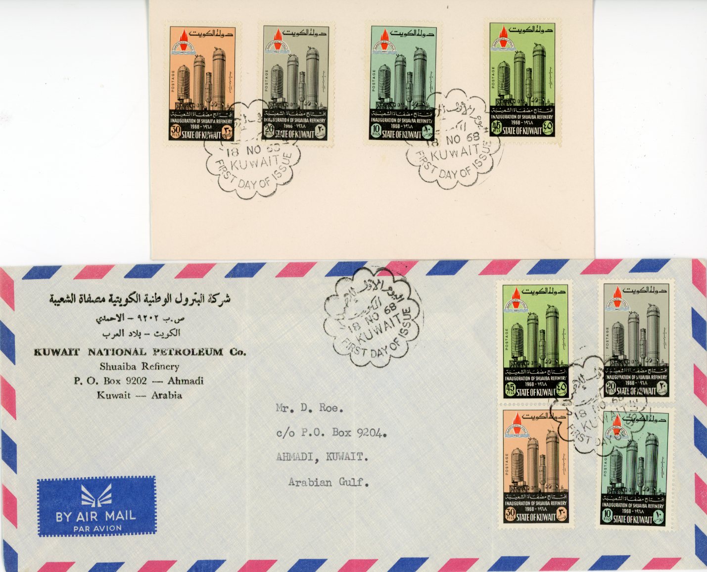 Kuwait: 1968 Shuaiba Oil Refinery two different FDCs.