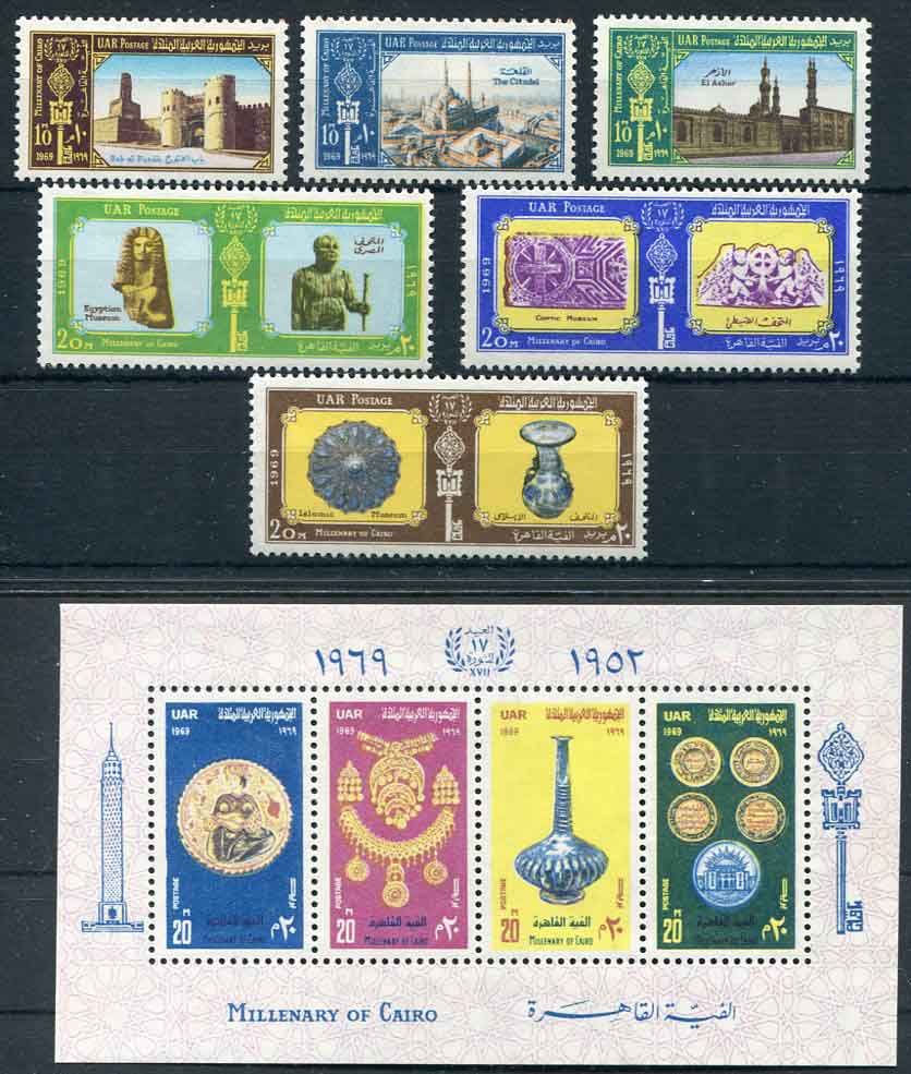 Egypt: 1969 (23 July). Cairo Millenary issue unmounted mint set and miniature sheet. Sg 1021/1026, MS1027