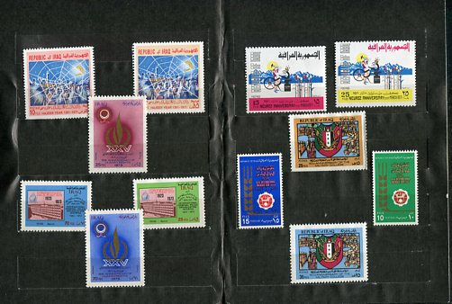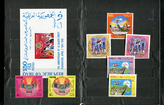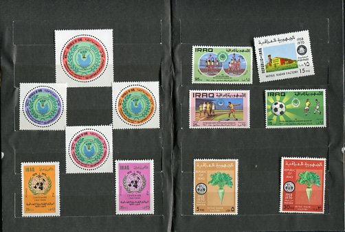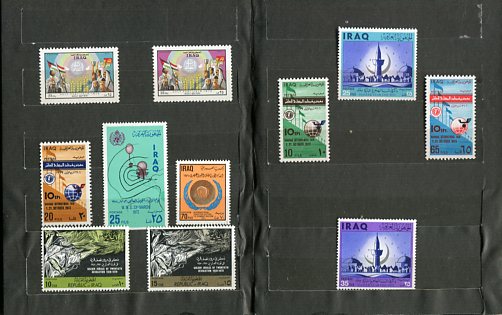 Iraq: 1970 – 1973 Al-Khateb inscribed presentation album prepared for 1974 UPU Congress in Lausanne containing unmounted mint commemorative stamps and miniature sheets. Stanley Gibbons catalogue value approximately £200