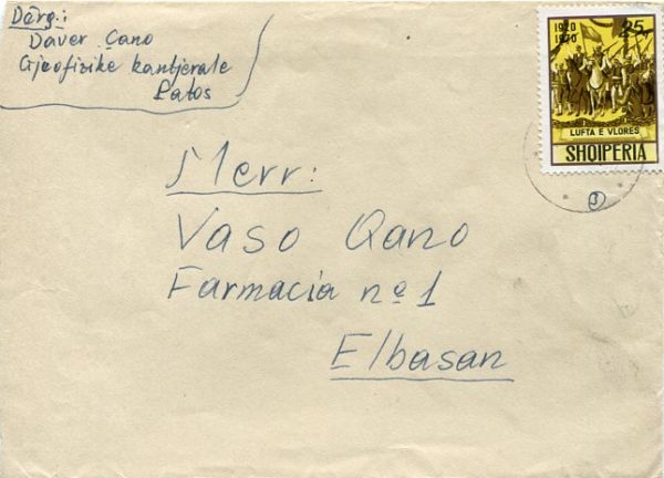 Albania: 1970 cover from Patos to Elbasan franked with 25q Battle of Vlore Anniversary stamp and tied illegible datestamp. Sc. 1312 – Sg. 1402