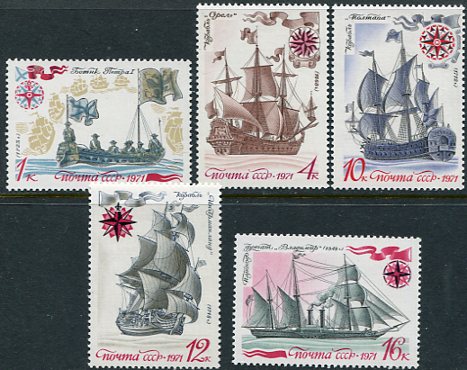 Russia – USSR: 1971 (15 December). History of the Russian Navy unmounted mint set. Sg. 4016/4020