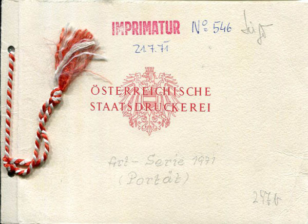 Yugoslavia: 1971 (27 November). Yugoslav Portrait Paintings set on Imprimatur folder from the printers archive on issued colours dated 21.7.71. Sg. 1495/1500