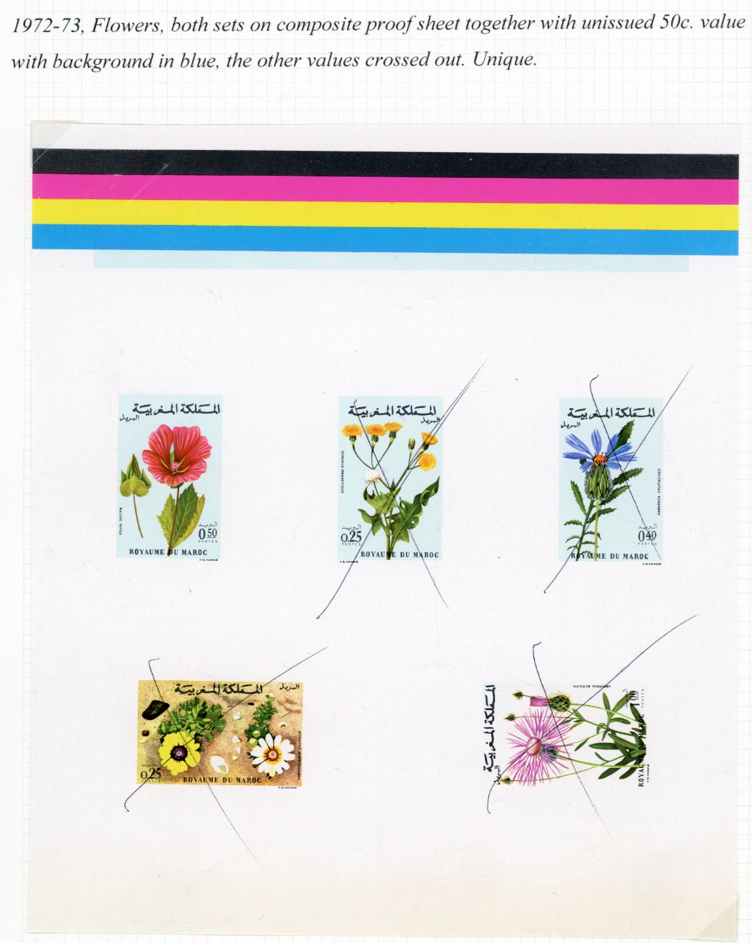 1972-73 Morocco Flowers Proof Sheet with Unissued 50c unique