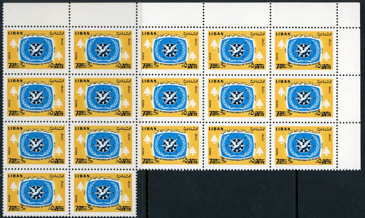 Lebanon: 1972 International Tourist Year 5p. surcharged on 7p.50 unmounted mint block of seventeen. Sg. 1118 **