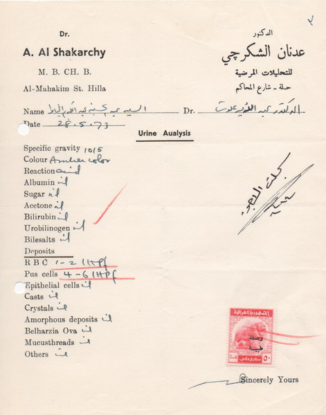 1973 Iraq 50f Medical Document