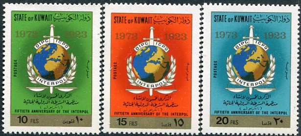 Kuwait: 1973 (3 June). 50th Anniv of Interpol Organization unmounted mint set. Sg. 567/569