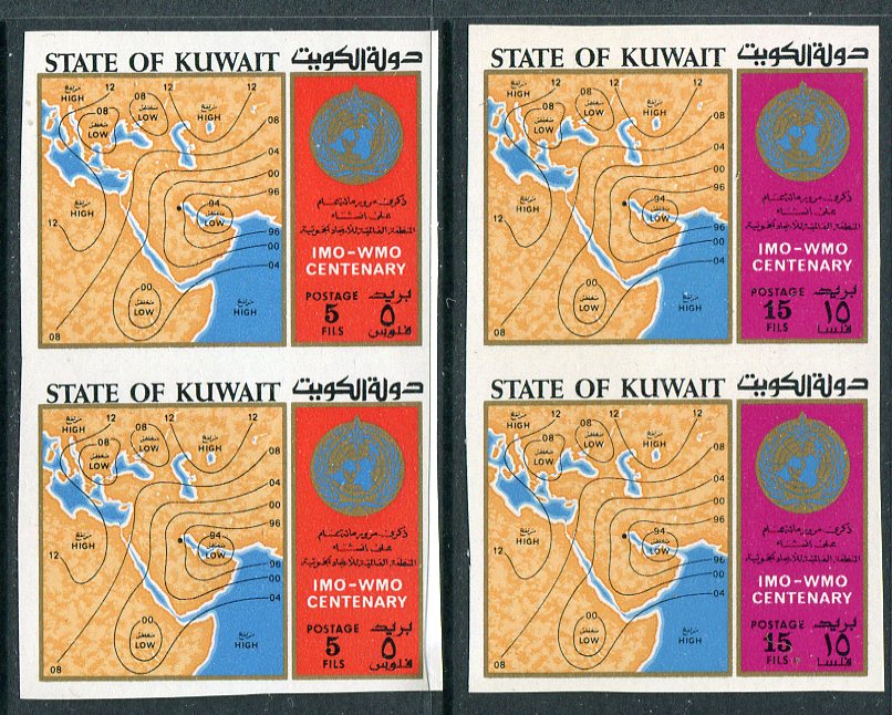 Kuwait: 1973 (4 September). Centenary of World Meteorological Organization unmounted mint imperforate pair 5f and 15f. Sg. 575, 577 **