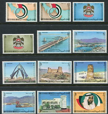 United Arab Emirates: 1973 (1 January). UAE Flag and Map of Gulf pictorial first issue unmounted mint set. Mi. 1/12, Sg. 1/12