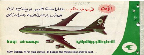 1980 Iraq Airways 3x50f Airport Tax Ticket