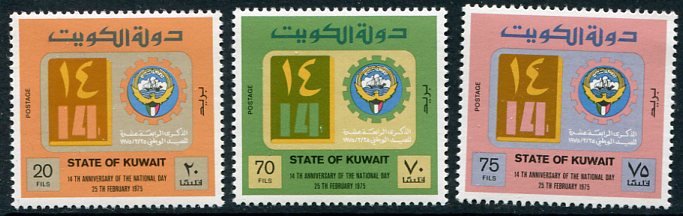 Kuwait: 1975 (25 February). 14th National Day unmounted mint set. Sg. 642/644