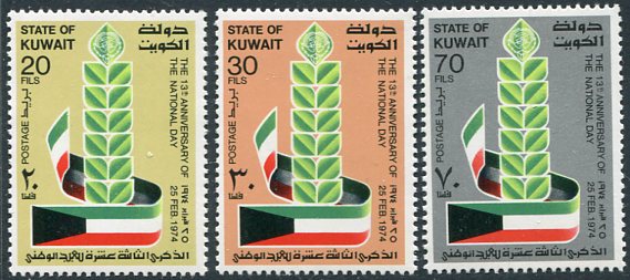 Kuwait: 1974 (25 February). 13th Anniv of National Day unmounted mint set. Sg. 618/620