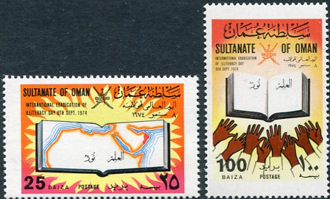 Oman: 1974 (8 September). Illiteracy Eradication Campaign Committee unmounted mint set. Mi. 160/161, Sg. 177/178