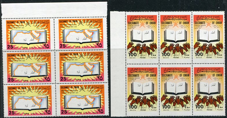 Oman: 1974 (8 September). Illiteracy Eradication Campaign unmounted mint marginal block of six set. Sg. 177/178