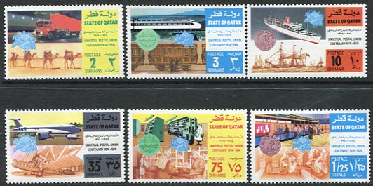 Qatar: 1974 (22 May). Centenary of Universal Postal Union UPU unmounted mint set. Mi. 591/596, Sg. 501/506