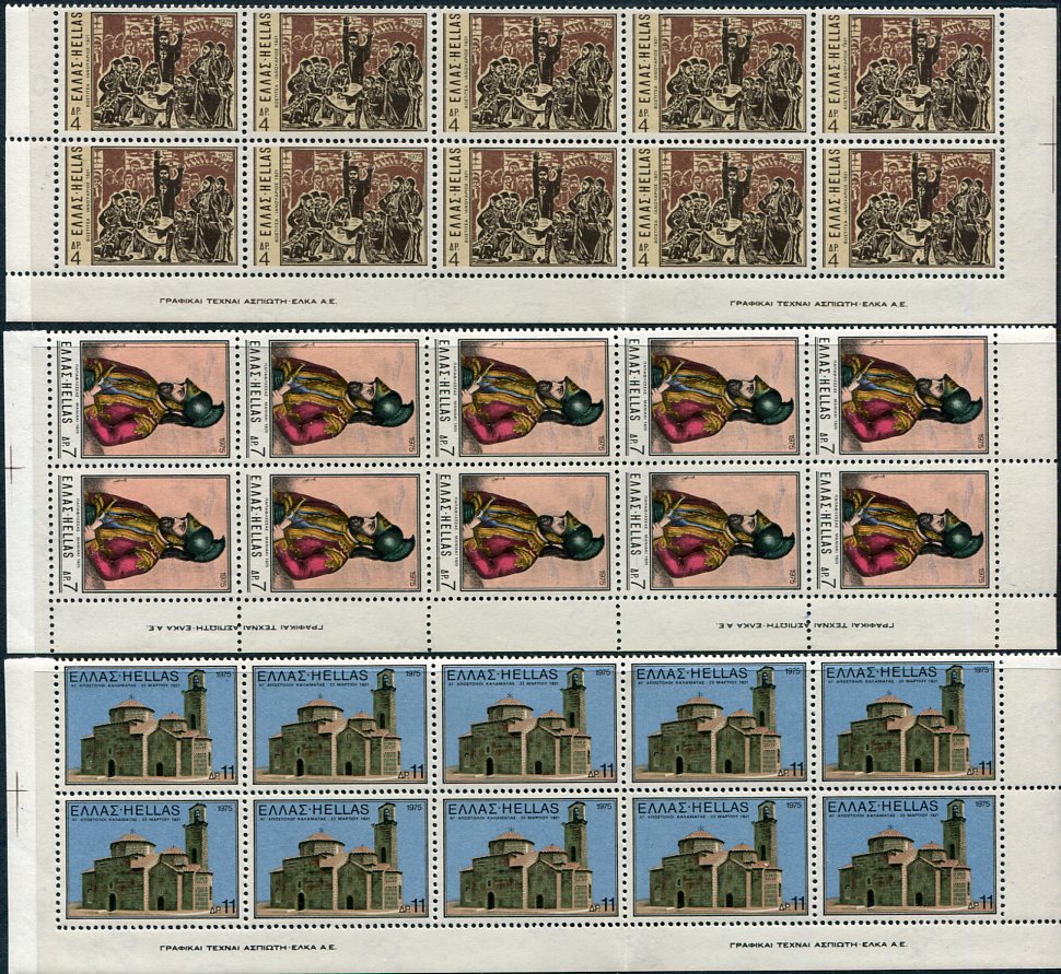 Greece: 1975 (24 March). Papaflessas unmounted mint marginal block of ten set. Hellas 1311/1313. **