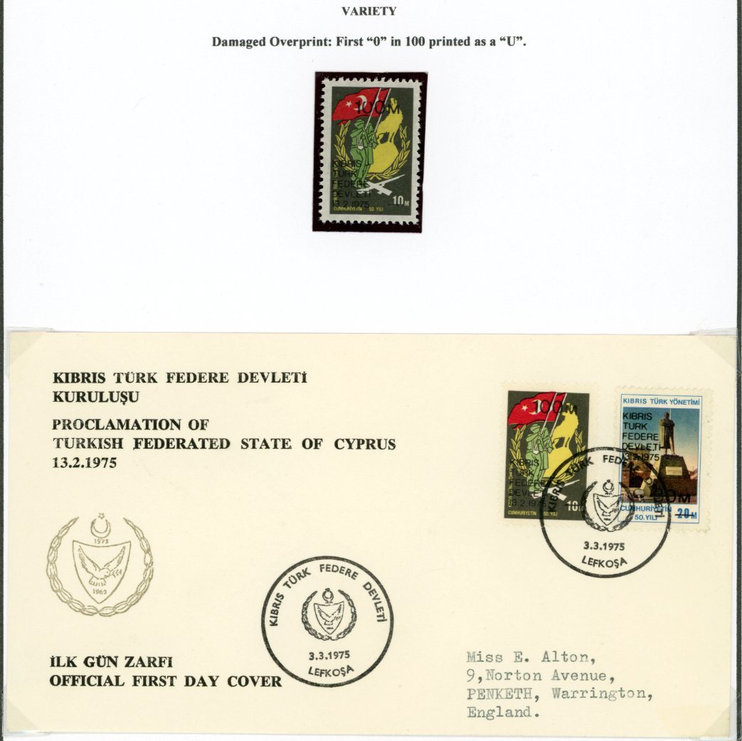 Turkish Cyprus: 1975 (3 March). Collection of Proclamation of the Turkish Federated State includes unmounted mint pair set, FDC, varieties and errors.
