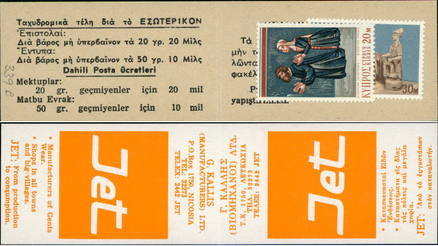Cyprus: 1976 Jet Menswear Christmas stamps booklet.