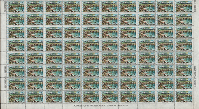 Turkish Cyprus: 1976 (2 August). Definitive issue 3m Kyrenia Harbour 5m unmounted mint part sheet of 80. Isfila KT38