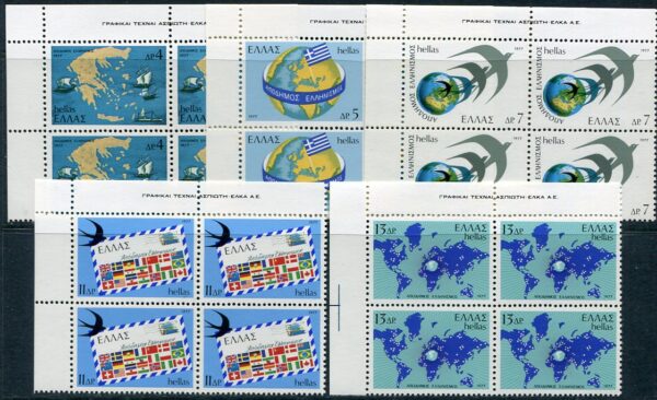 Greece: 1977 (15 December). Greeks Abroad unmounted mint block of four set. Hellas 1407/1411. **