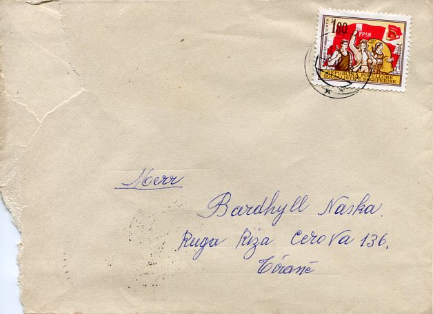 Albania: 1978 (8 September). Cover with its contents used inland franked with 1,80l Labour Unions Congress commemorative stamp tied by Korce datestamp and next day Tirane arrival cds. Sc. 1798